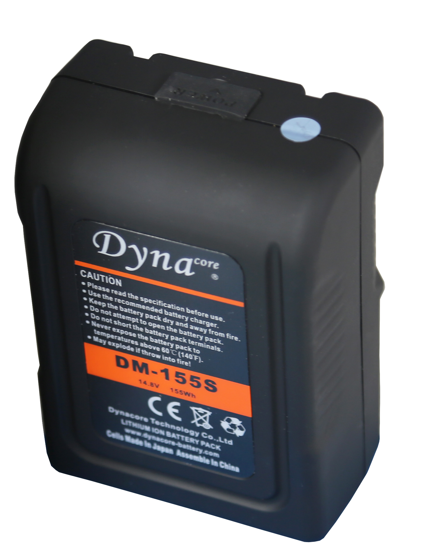 Batería V-Lock DYNACORE DM-155S de 155W, 14.8V, 0,8kg, 155Wh, con indicador LED de 5 niveles y conector PT.