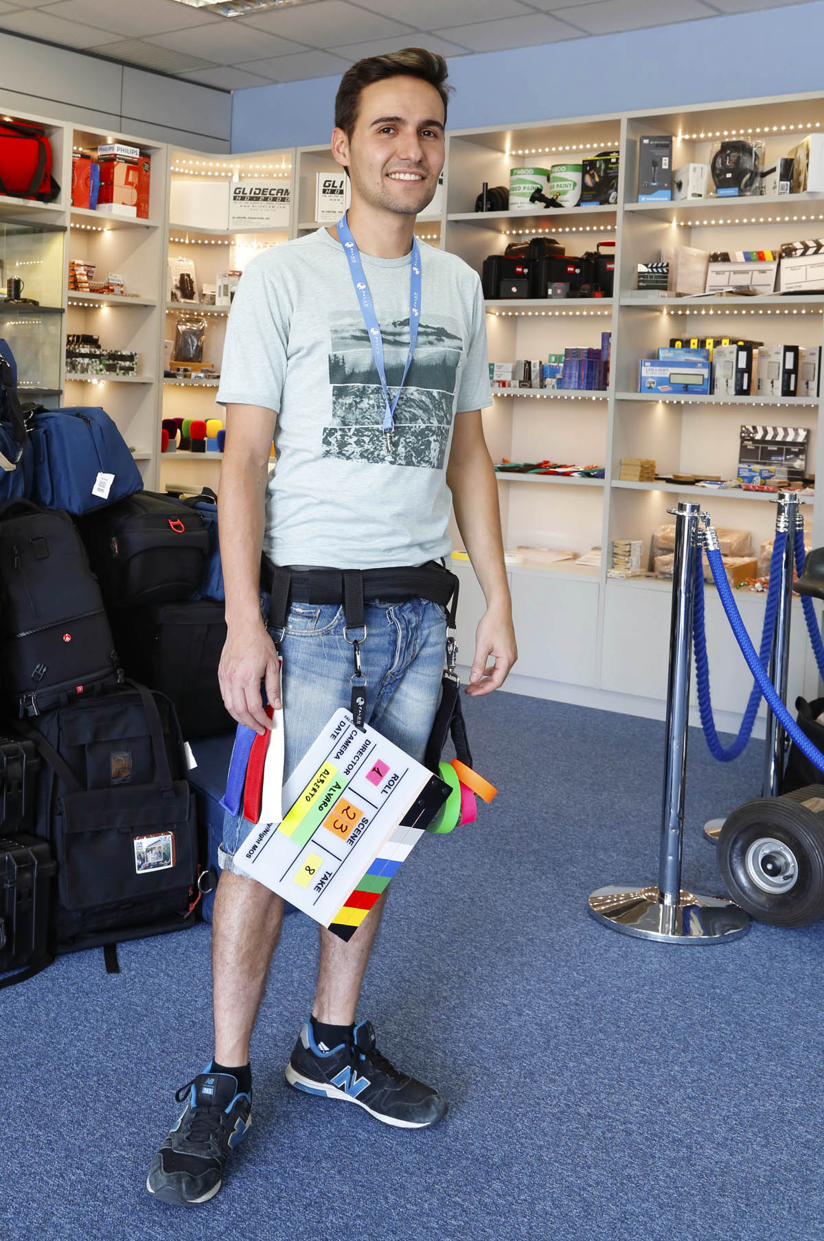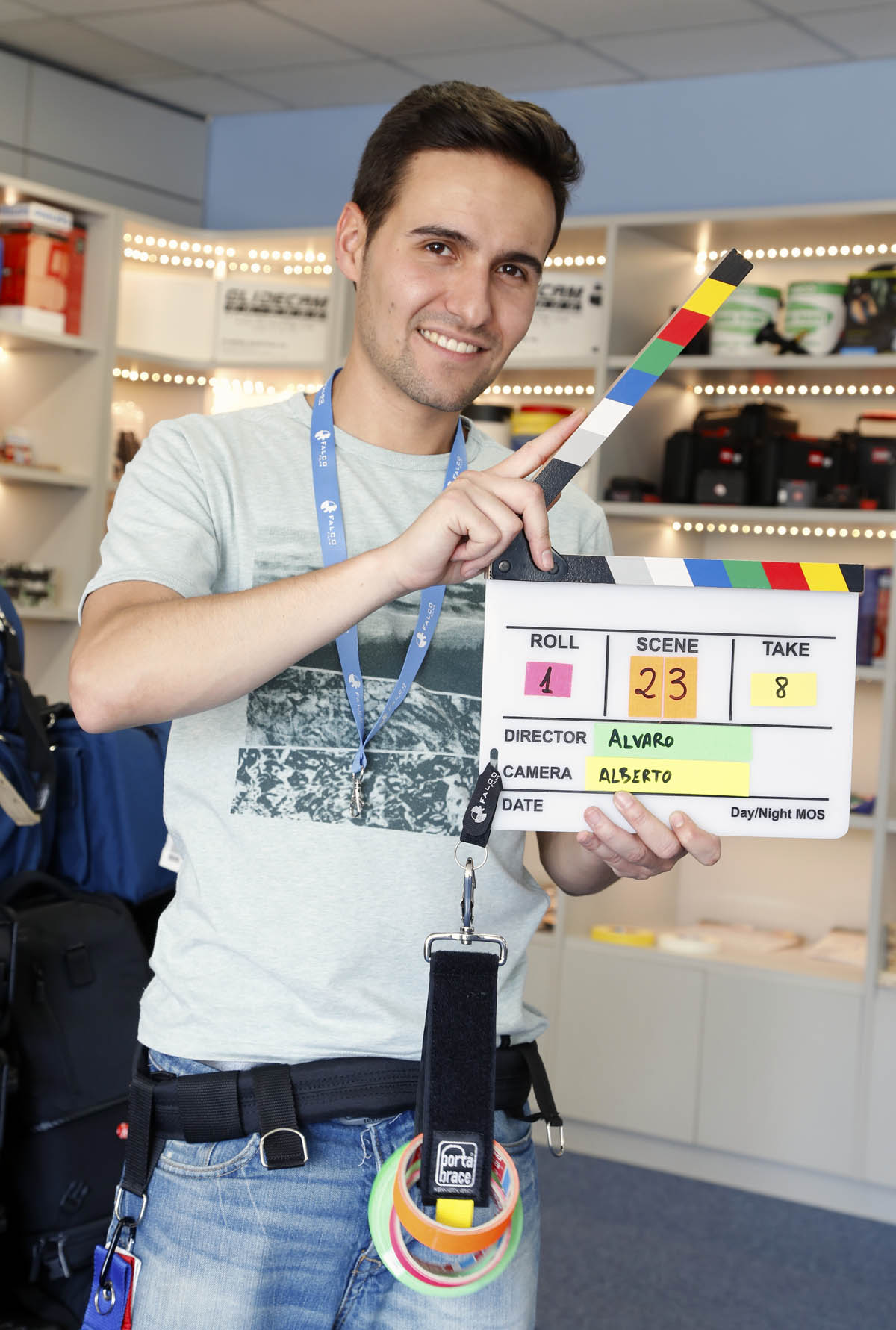 Incluida arandela y mosquetón para colgar la claqueta en un cinturón,