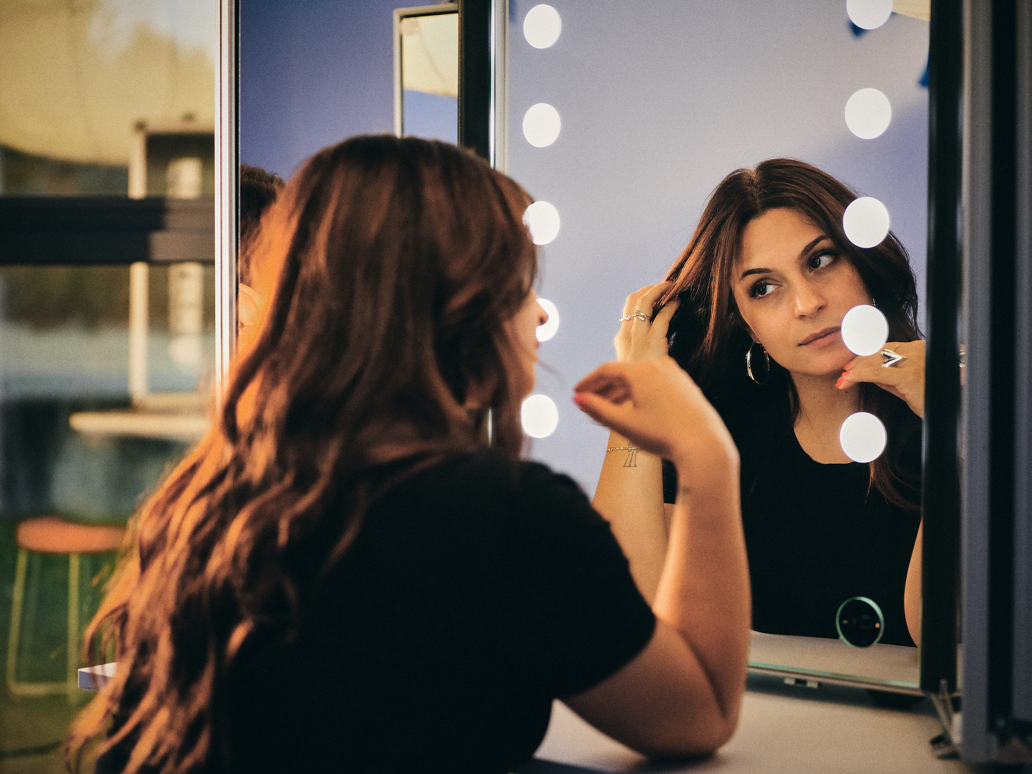 Espejo para maquillar típico de camerinos, muy robusto, equipado con tecnología LED.