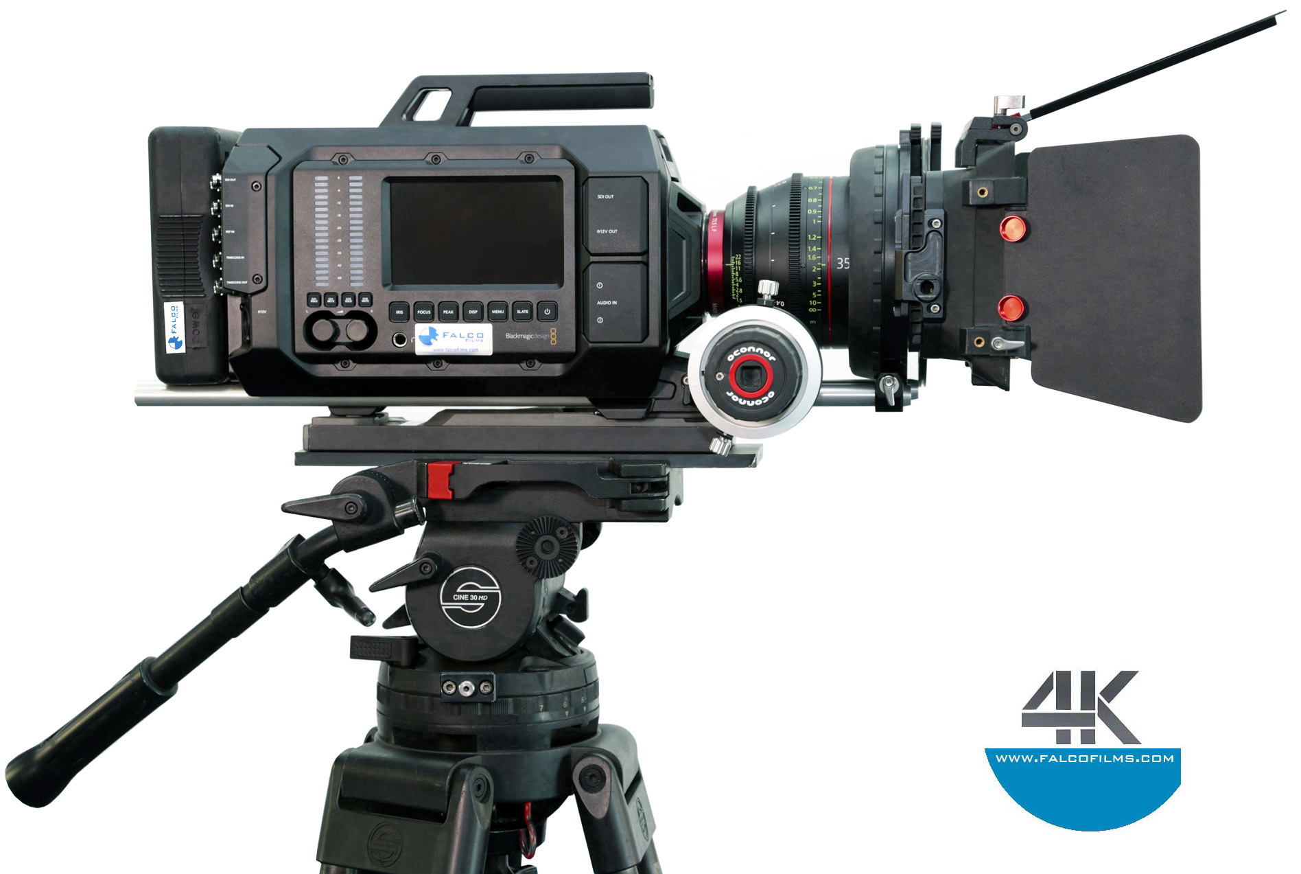 KIT BLACKMAGIC URSA 4K EF con cámara, objetivo Canon o Zeiss, baterías, porta filtros, mando de foco, discos SSD y trípode a elegir, y maleta.