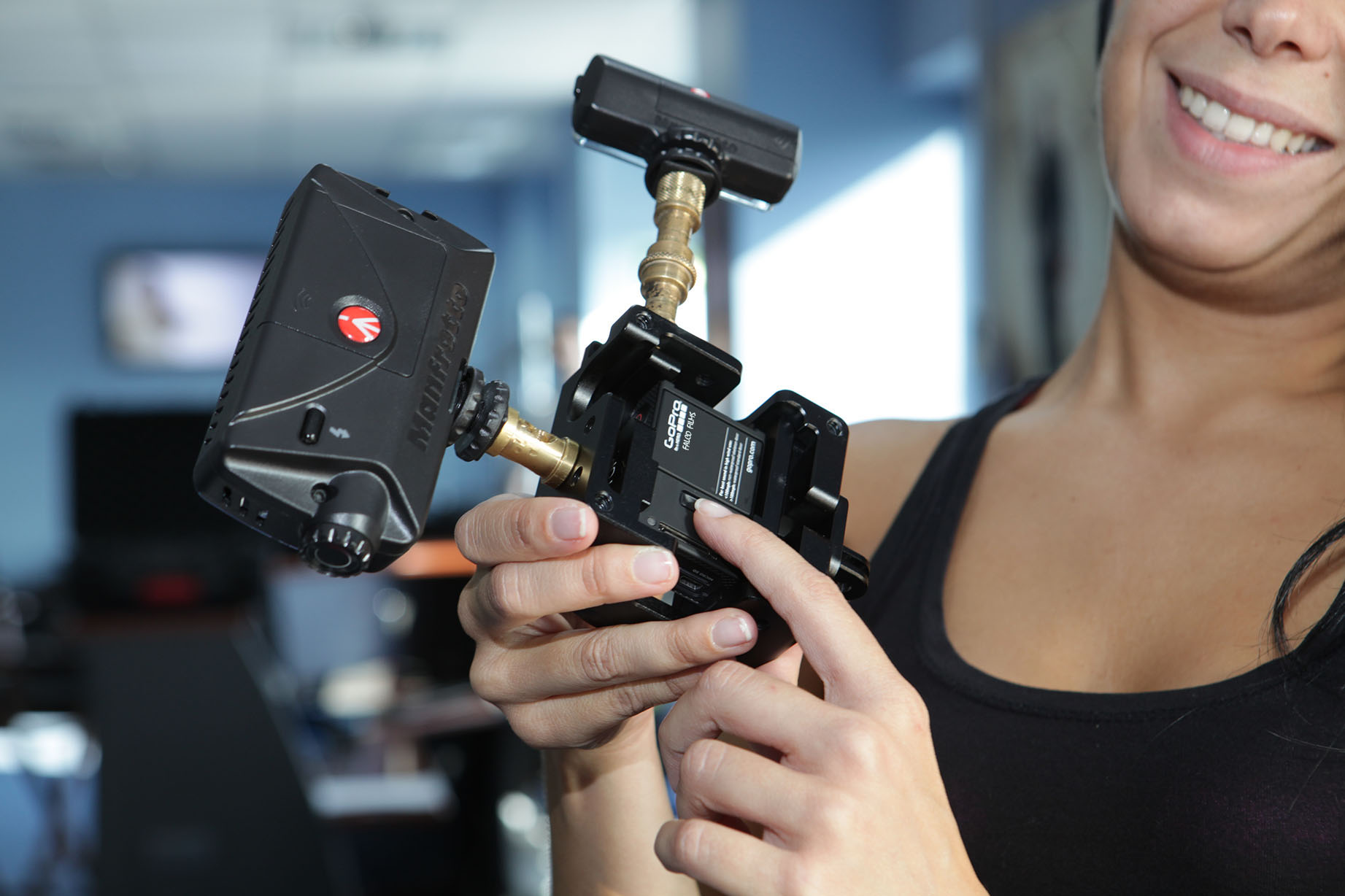 Permite poner la cámara plana en cualquiera de sus 6 caras, y también centrar el eje de la óptica para su montaje en trípode o cualquier otro soporte.