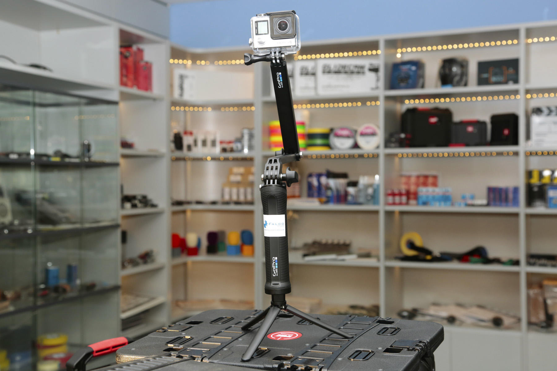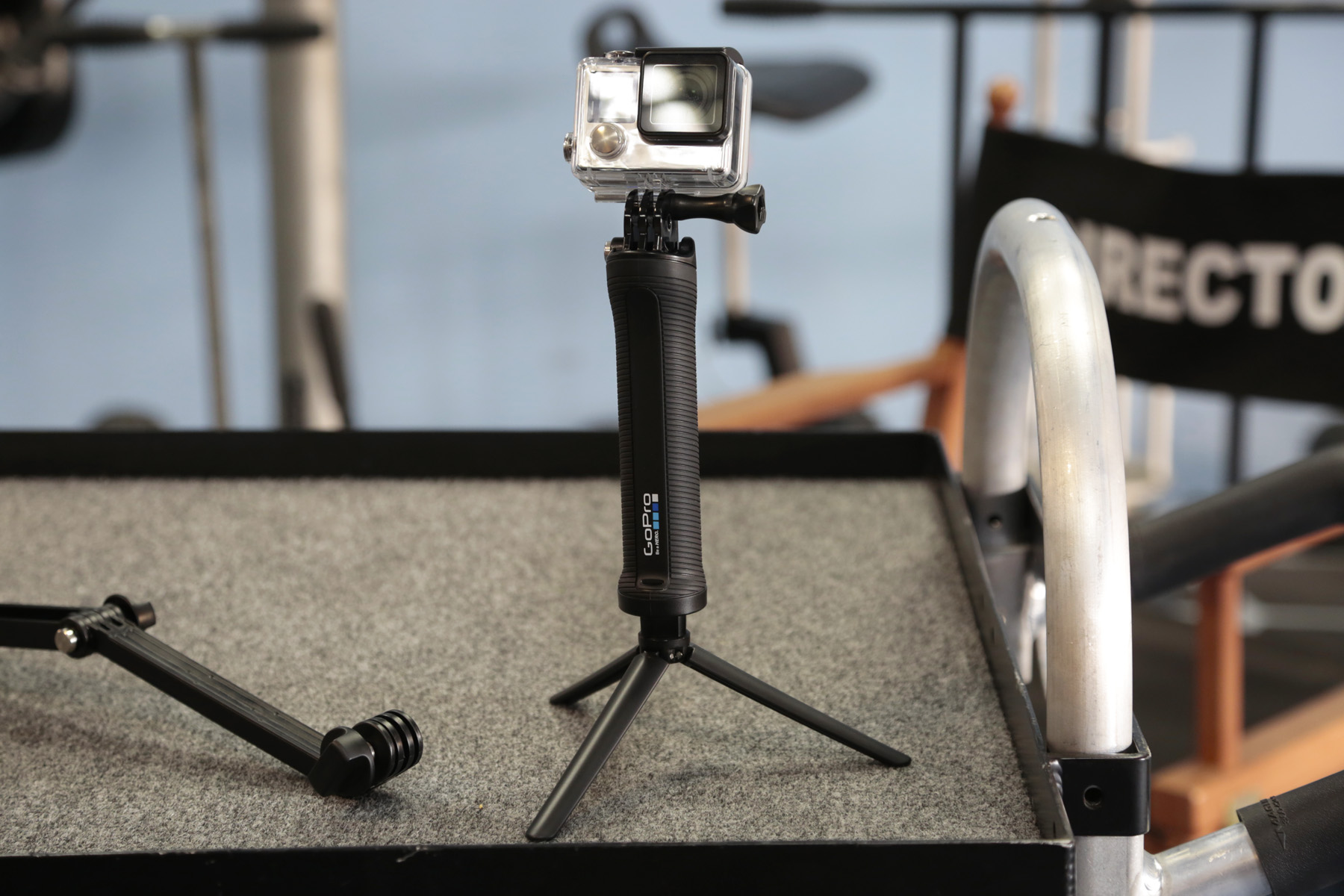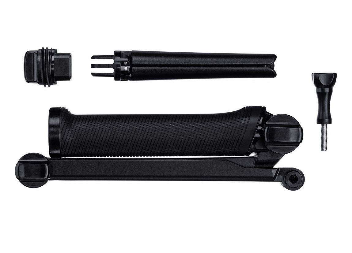 Usa el brazo con empuñadura como soporte para barras para grabar metraje POV o con cámara de seguimiento