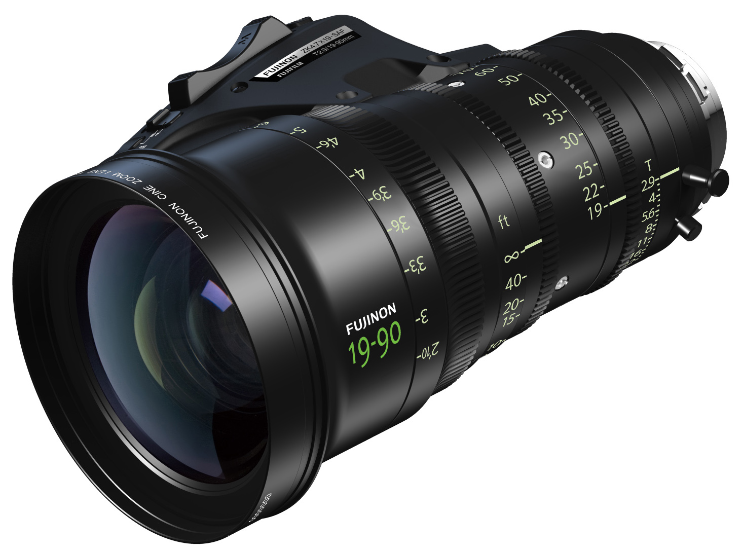 Lente de zoom ligero FUJINON ZK4.7x19 de 19-90mm, con montura PL, óptica 4K y apertura T2.9, ideal para filmaciones en alta resolución.