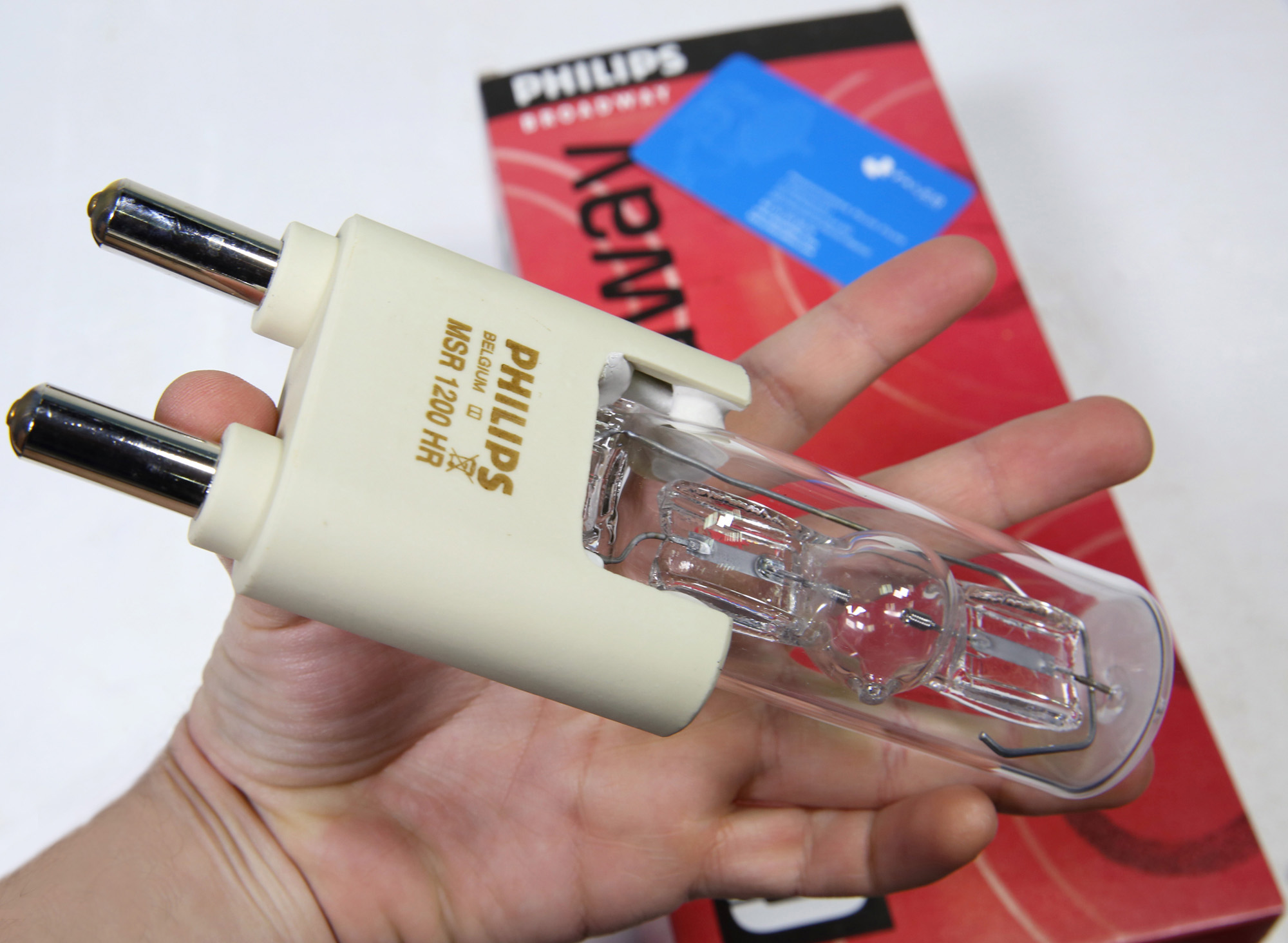 Lámpara HMI 1200HR de BROADWAY PHILIPS, modelo MSR 1200 HR, código 191861, base G38, ideal para iluminación profesional.