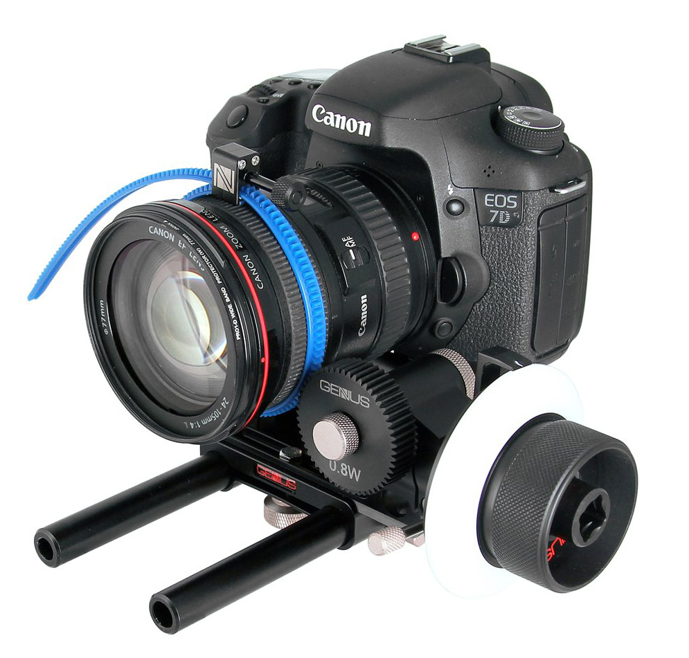 Follow Focus GENUS G-BFOCDEL BRAVO DELUXE para barras de 15mm, alta precisión y control suave para cineastas exigentes.