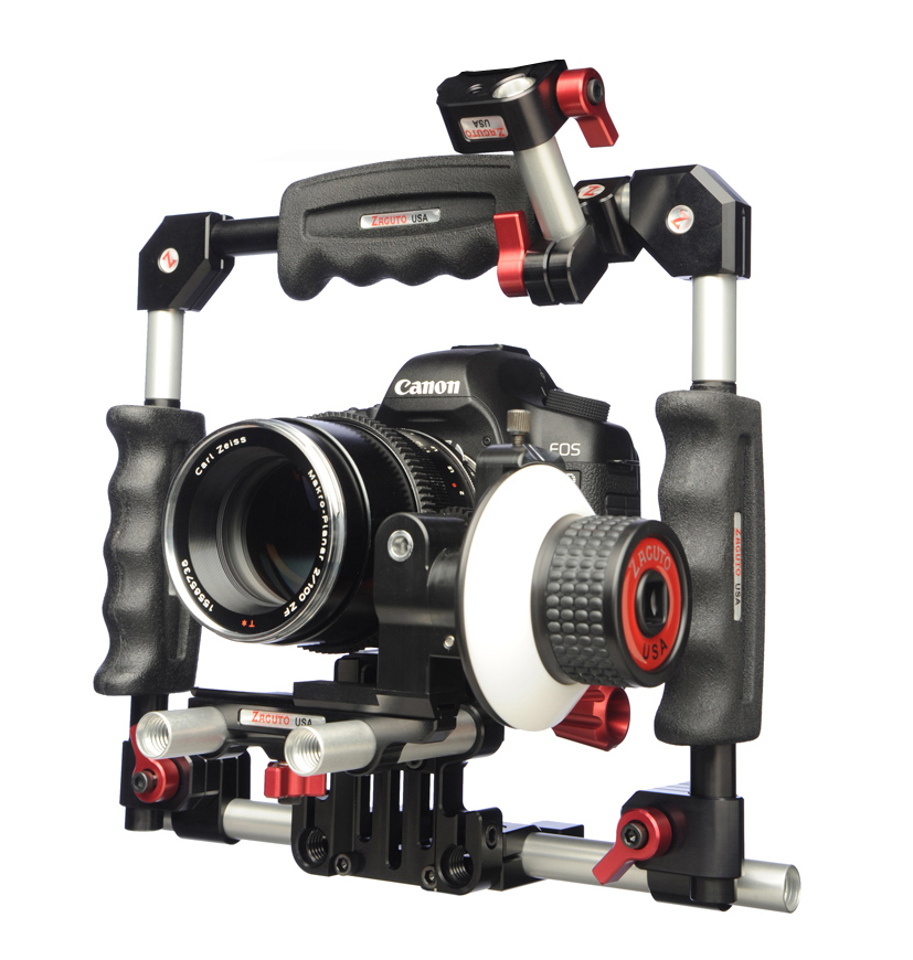 Soporte ZACUTO DSLR Z-Cage con mando de foco Z-FOCUS para estabilización y control preciso de enfoque en tus grabaciones.