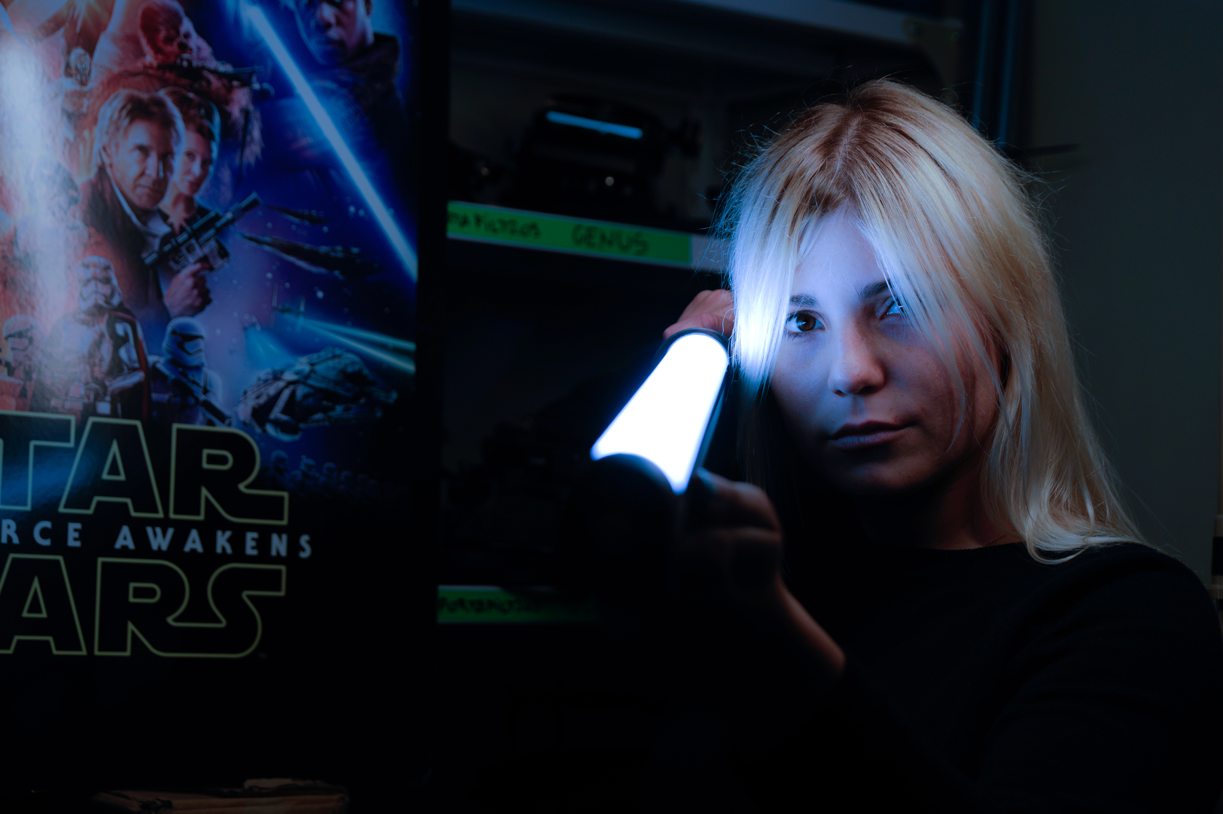 Tubo LED que tiene una rueda al final de la unidad,