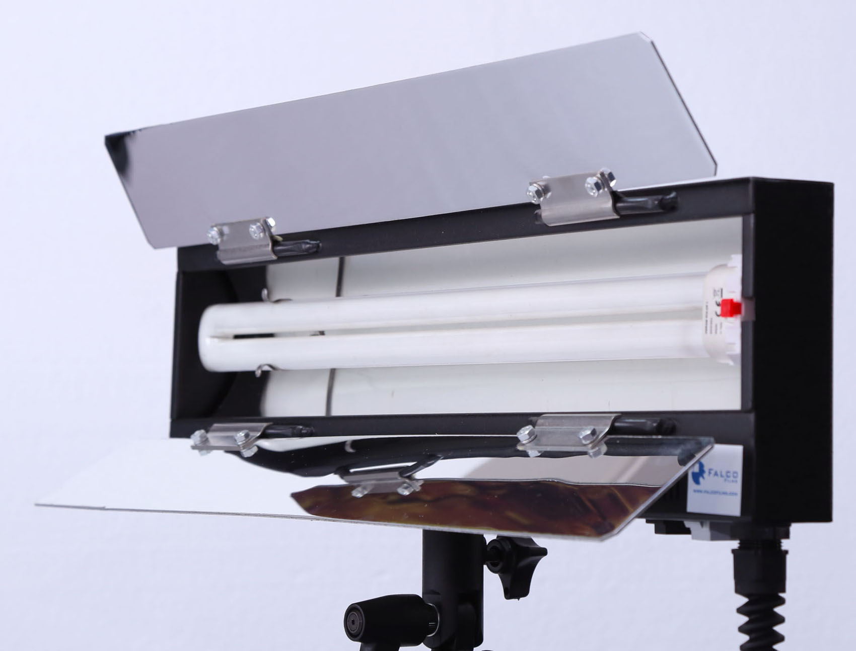 Panel de luz fluorescente COTELUX 155R, 220V 240W, 2 tubos con dimmer, incluye maleta y pie, disponible en luz fría o cálida.