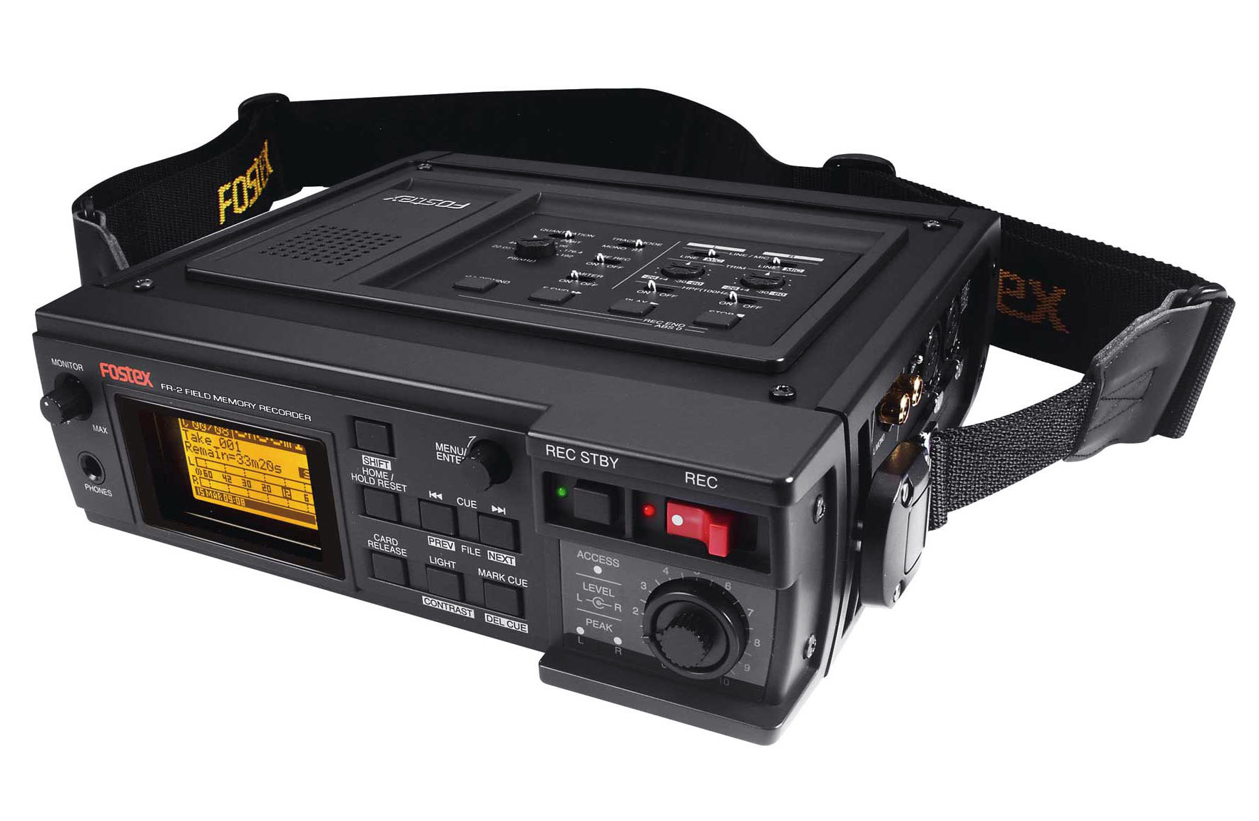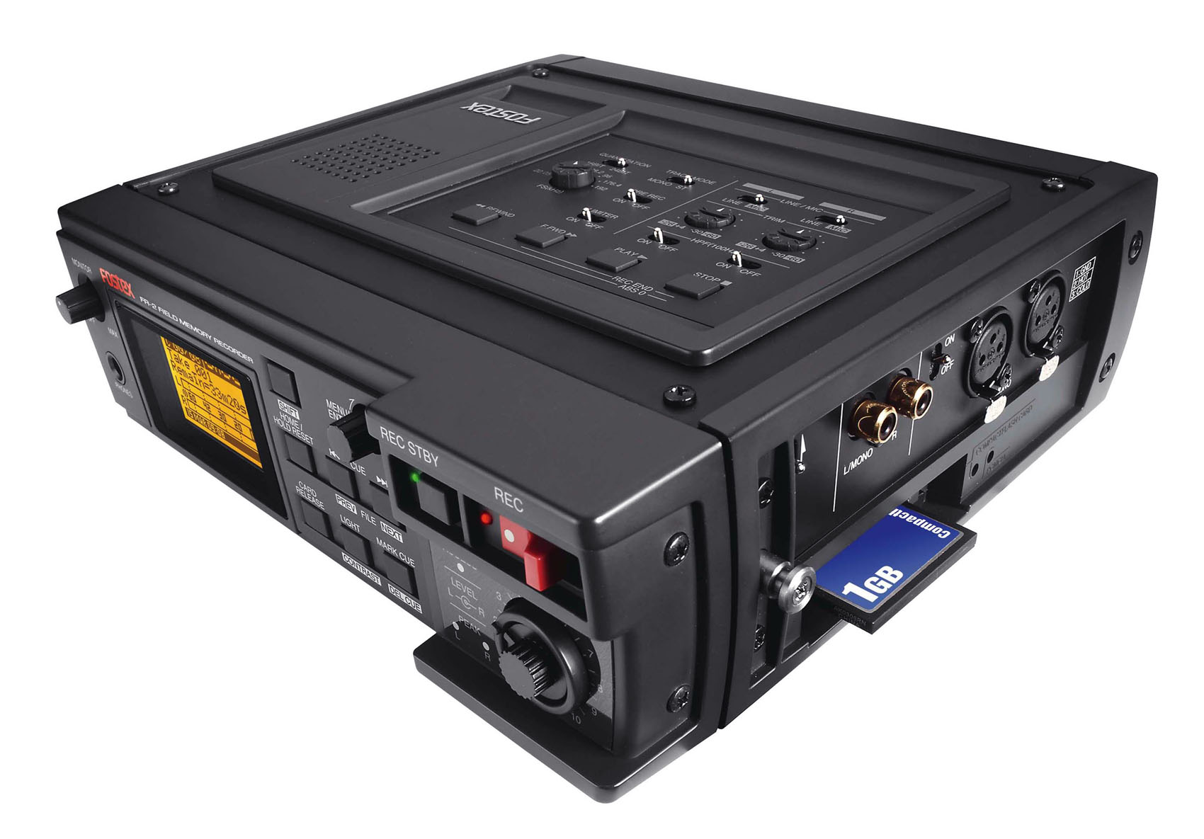 Grabador portátil FOSTEX FR2 LE: Dos pistas, almacenamiento en CompactFlash, USB, alimentación versátil, BWF, pre-grabado, phantom 48V, alta resolución y baja distorsión. Ideal para exteriores.