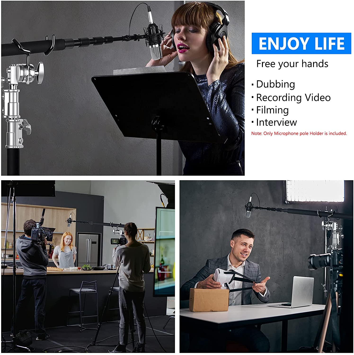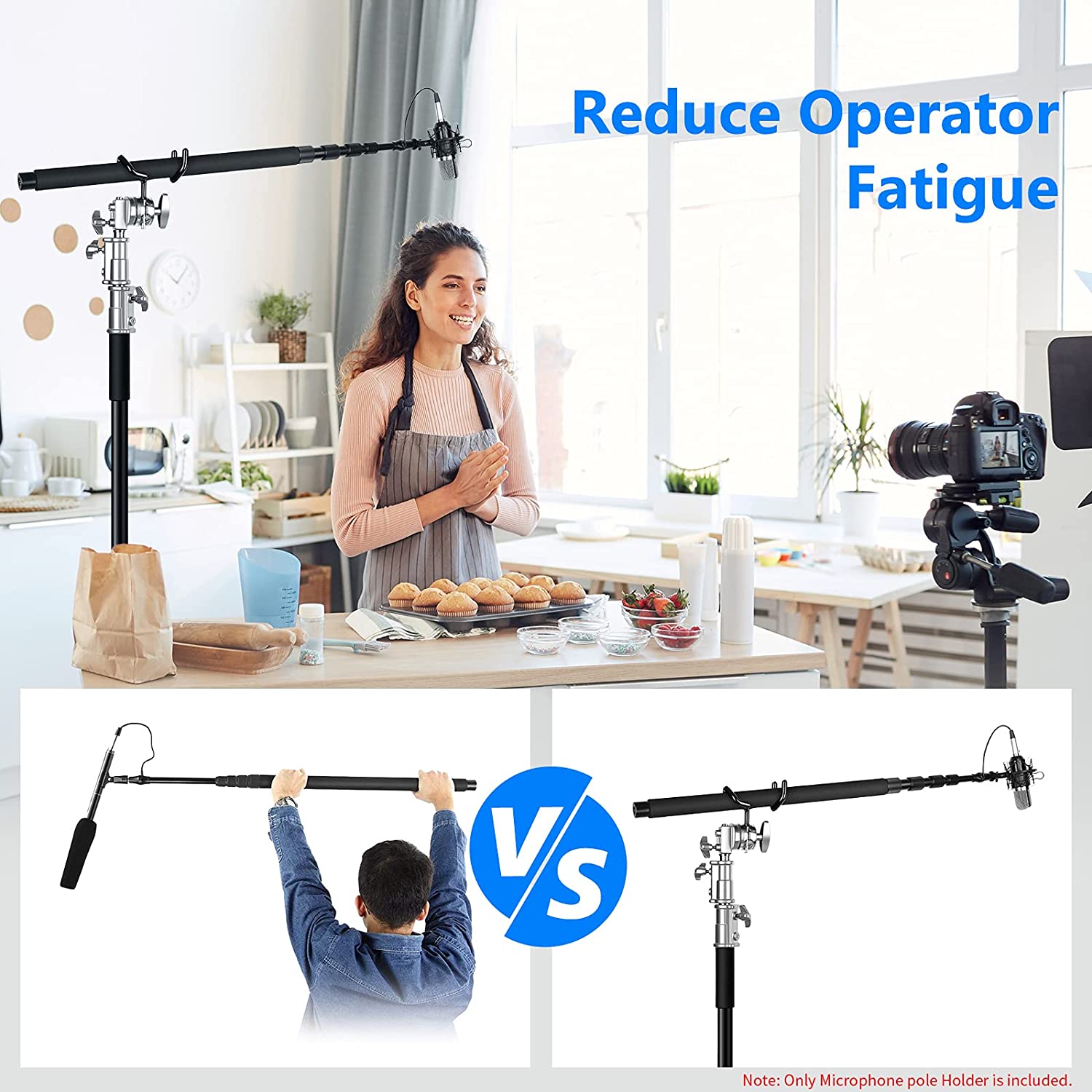 Soporte de acero para colocar la pértiga del micrófo en un pie de iluminación.