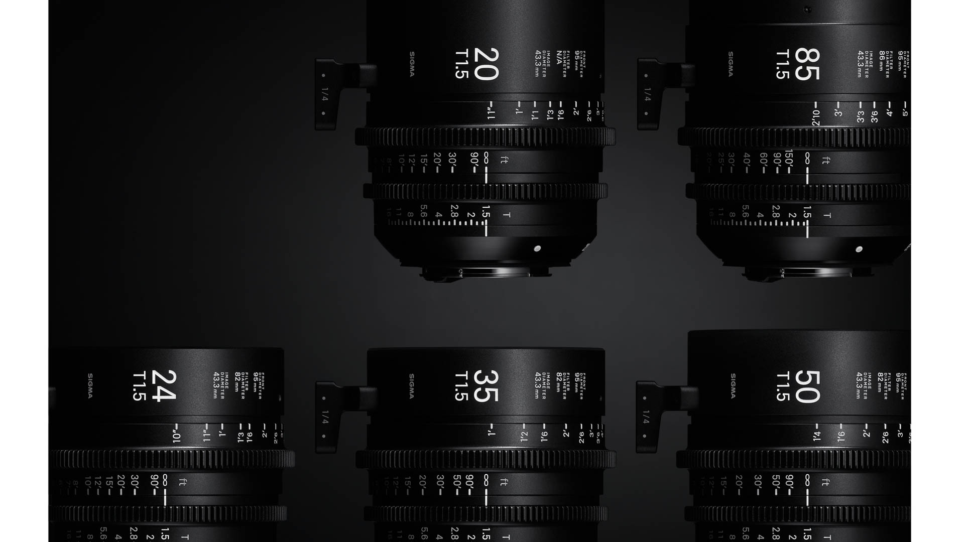 KIT de 6 lentes fijas ZEISS DISTAGON con montura EF CANON, incluyendo focales desde 18mm a 100mm y aperturas rápidas perfectas para fotografía y video.