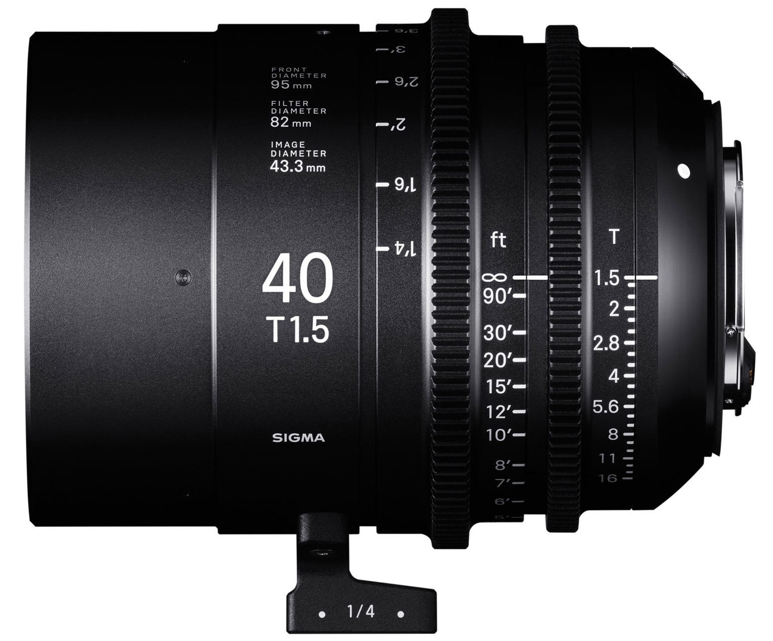Óptica fija SIGMA 40mm T1.5 FF: Full Frame, resolución 8K, diseño compacto, anillos silenciosos, y aperturas brillantes para producción cinematográfica profesional.